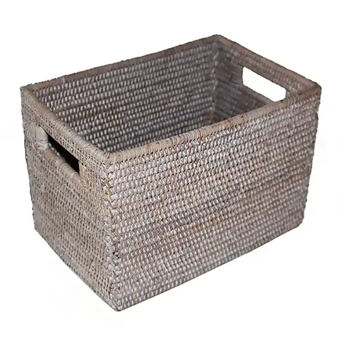 White Wash Rattan Rectangular Storage Basket 12×8