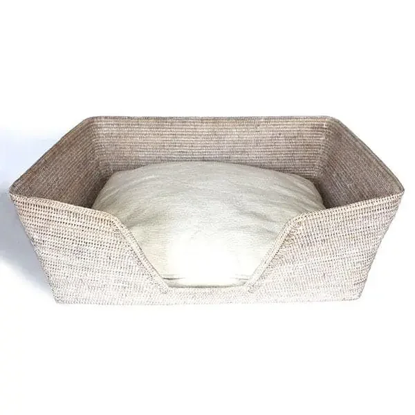 White Washed Rattan Large Dog Bed Basket 30″