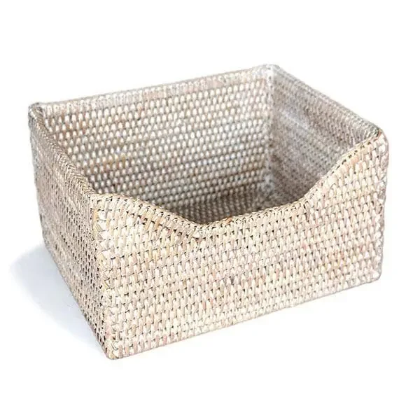 White Washed Rattan Small File Holder Basket