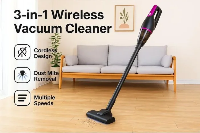 3-in-1 Cordless Vacuum Cleaner – Lightweight, Multi-Surface, Mite Removal, 700ml Capacity