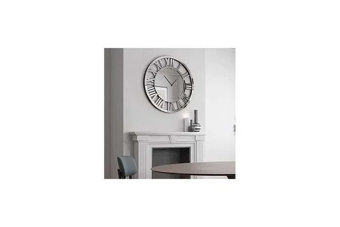 60cm Silver Mirrored Wall Clock with Roman Numerals – Modern Decorative Wall Art