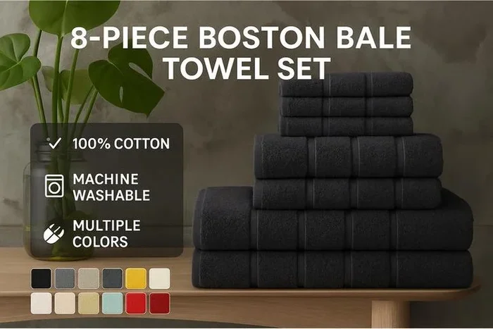 8-Piece Boston Bale Luxury Towel Set – Available in 13 Vibrant Colours!
