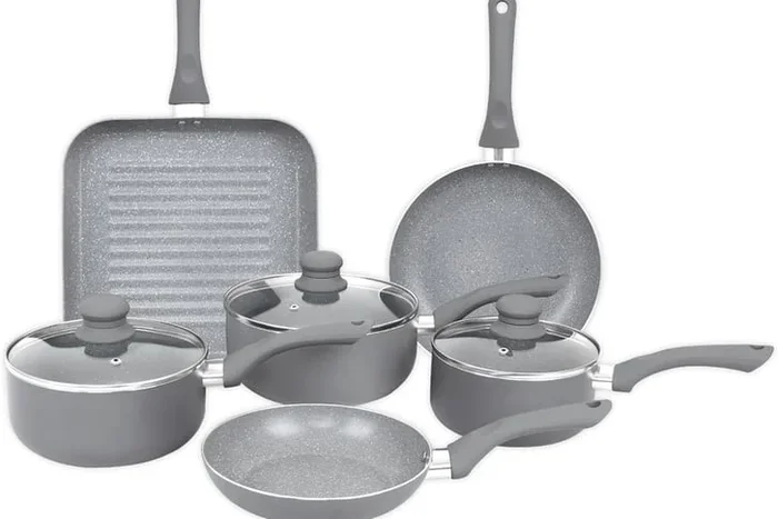 9 Pc Grey Marble Non-Stick Induction Cookware Set – Aluminium, Modern, Multi-Size Pans