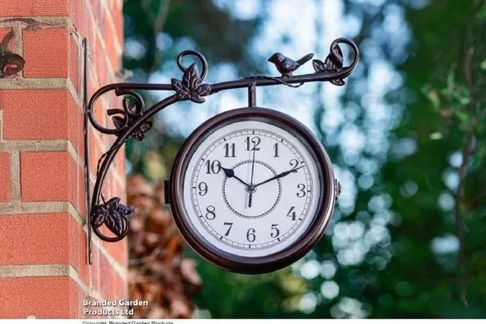 Aldbury Double-Sided Outdoor Garden Clock – Metal Vintage Wall Decor, 33cm, Mahogany Brown