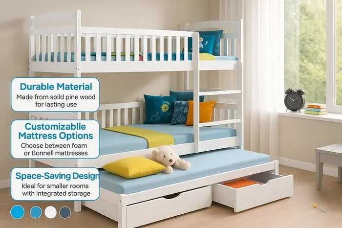 Viki Kids’ Dream Bunk Bed in White – Mattress Choices