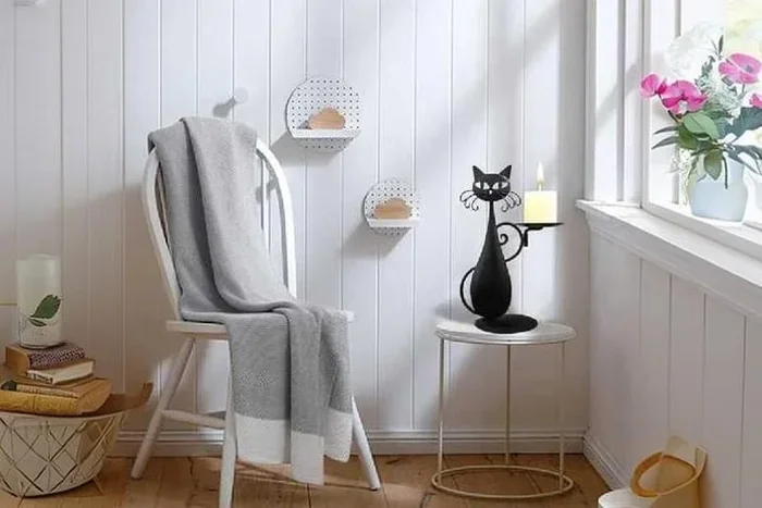 Vintage Metal Black Cat Candlestick Ornament – Farmhouse Table Decor, 30cm
