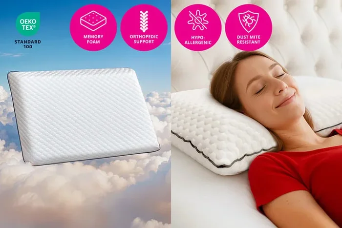 Visco Memory Foam Orthopaedic Cervical & Neck Pillow – Hypoallergenic, Ergonomic Support, Cooling Breathable, 60x40cm