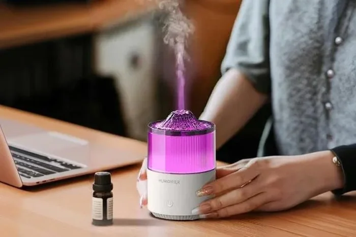Volcanic Rock LED Aroma Diffuser Table Decor – Modern ABS/PP, Flame Effect, Compact 9.6×9.6x15cm