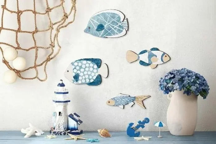 Wooden Nautical Wall Art Hanging Decor Set – 4-Piece Vintage Marine Style