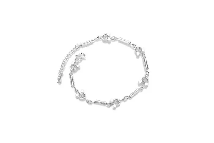 Enchanting Silver Mickey & Minnie Anklet with Glittering CZ Charms