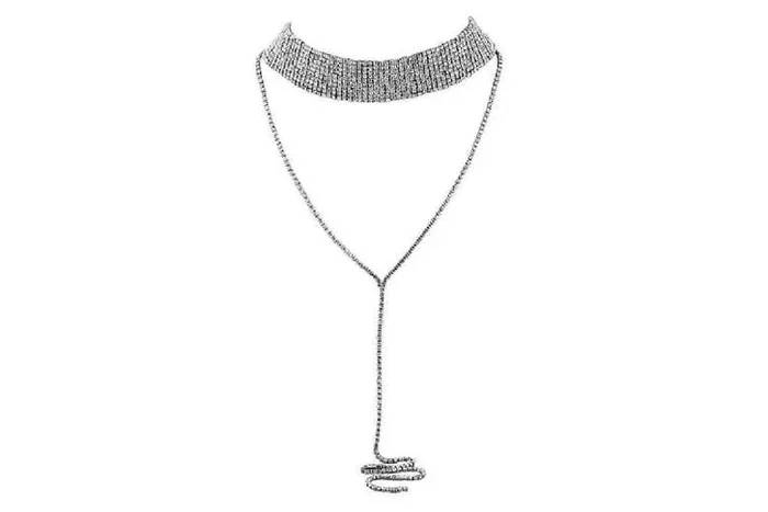 Multi-layer Rhinestone Tassel Statement Choker Necklace for Women – Silver Plated, Trendy Layered Chain