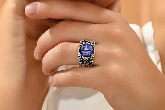 Mystical Purple Cat Eye Adjustable Silver Ring