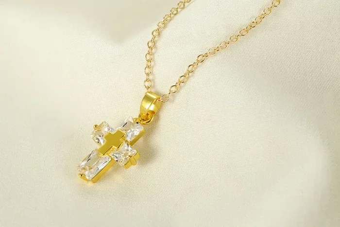 Sparkling Golden Cross Crystal Necklace
