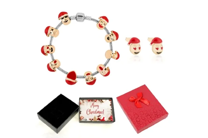 Sparkling Santa Bracelet & Earrings Holiday Set