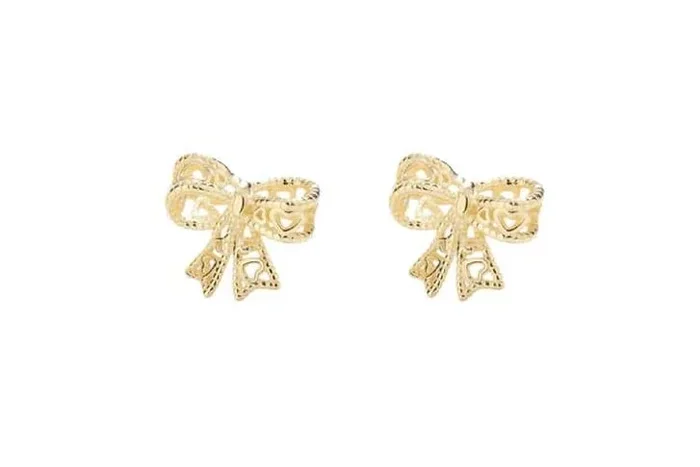 Sterling Silver & 14K Gold-Plated Ribbon Bow Stud Earrings – Hypoallergenic, Sparkling Cubic Zirconia, S925 Hallmark