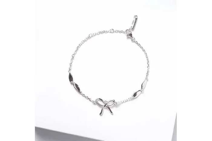 Sterling Silver Adjustable Ribbon Bow Bracelet – White Gold-Plated, S925, Hypoallergenic