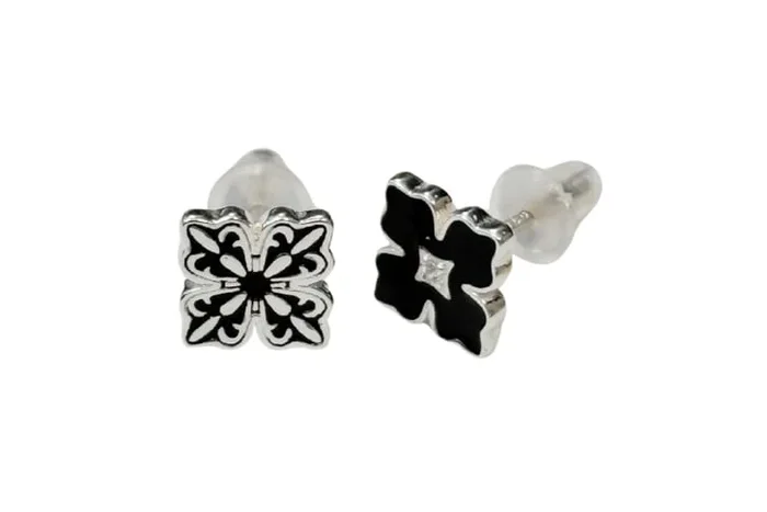 Sterling Silver Black Enamel Clover Stud Earrings – 925 Hypoallergenic Studs with Cubic Zirconia