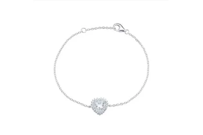 Sterling Silver Cubic Zirconia Heart Bracelet with Hallmark S925