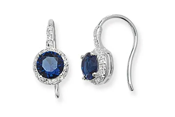Sterling Silver Cubic Zirconia Sapphire Drop Hook Earrings