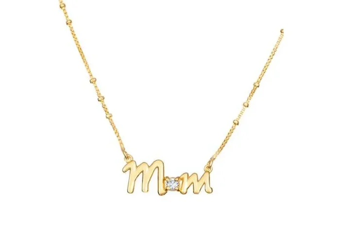 Sterling Silver Gold Plated ‘Mum’ Pendant Necklace with Cubic Zirconia – Hypoallergenic Minimalist Chain