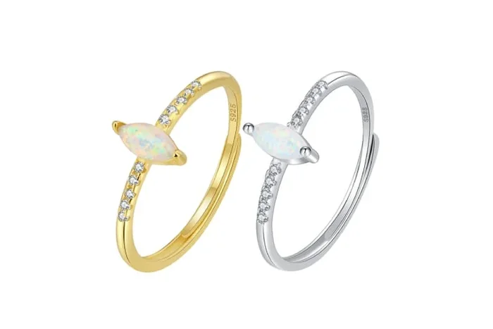 Sterling Silver Marquise Opal Gemstone Adjustable Ring – Vintage Statement Jewellery