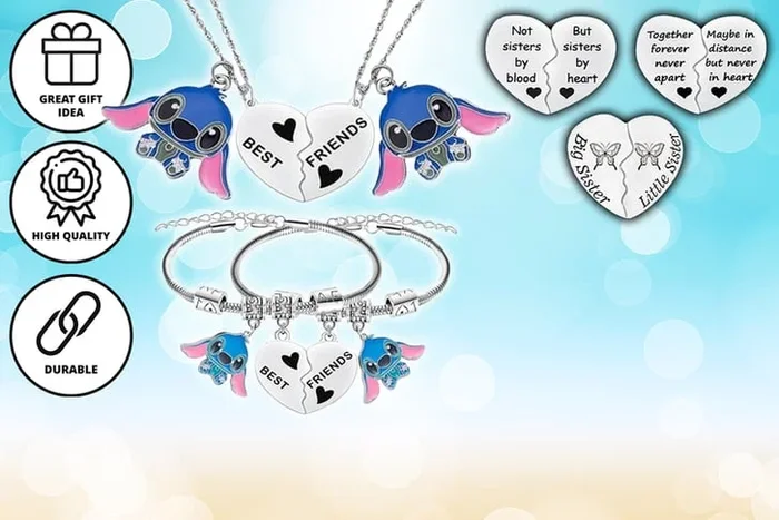 Stitch-Inspired Friendship Jewellery Set – Necklace and Bracelet Options