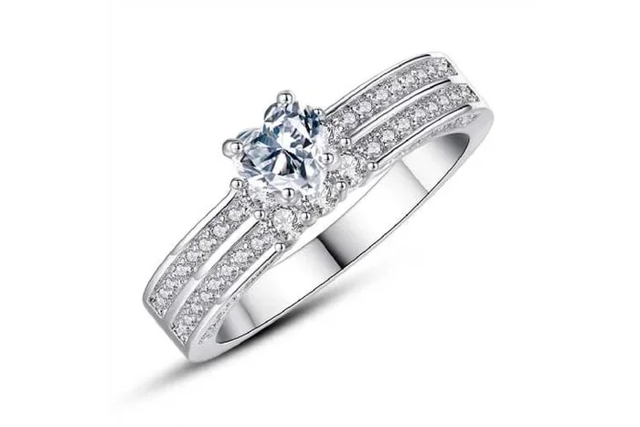 Stunning Double Row Heart Crystal Silver Ring