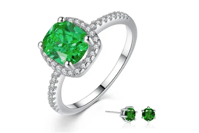 Stunning Green Crystal Ring & Earrings Set – Your Gateway to Glamour!