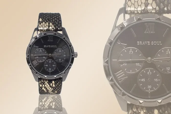 Women’s Brave Soul Black & Gold Snakeskin Watch – A Statement of Elegance
