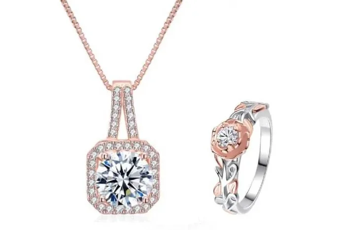 Captivating Rose Gold Crystal Pendant & Ring Ensemble