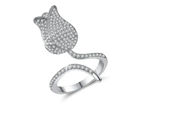 Dazzling Crystal Tulip Open Ring – Adjustable Sizes K-T!