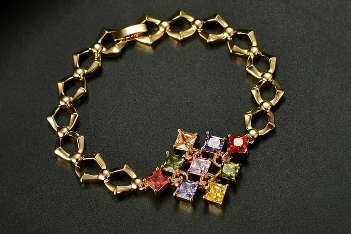 Dazzling Diamond-Shaped Gemstone Bracelet – Radiant Rose Gold Plated!