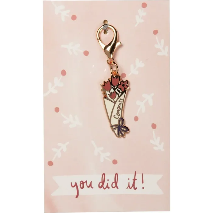 Congrats You Did It! Flower Bouquet Hard Enamel Keychain Charm Congratulations Gift Attach to Handbags, Backpacks, Keyrings