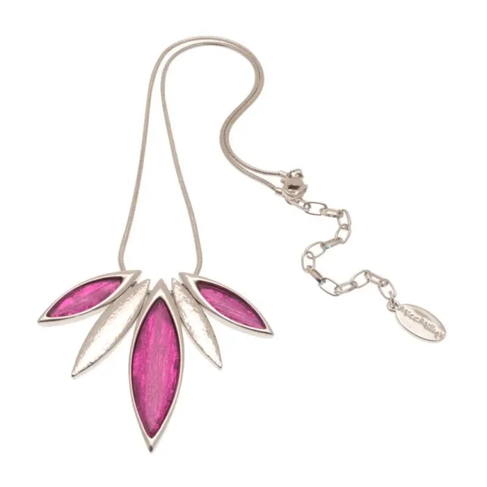 Pink and Silver Resin Leaf Necklace