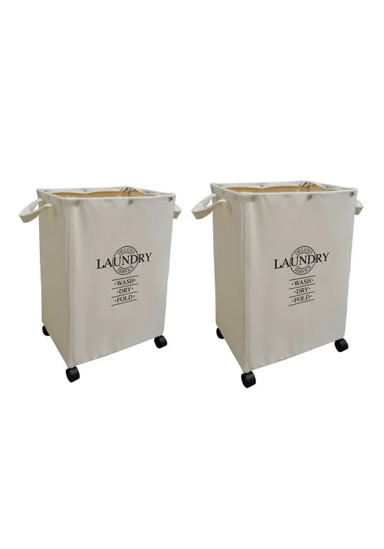 “Wash, Dry and Fold” Set of 2 Laundry Hampers with Wheels