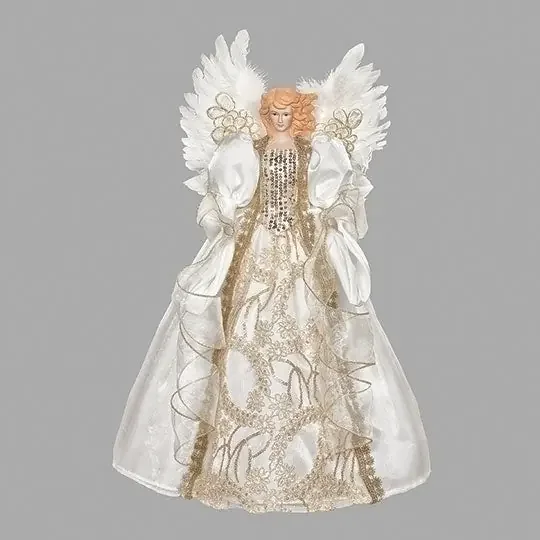 16″H Angel Tree Topper with Ivory Lace and Feather Wings