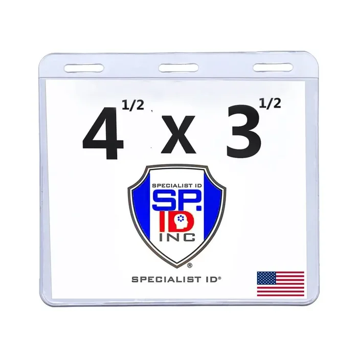 4×3 Extra Large Badge Holder – USA MADE Plastic Horizontal 4 1/2 x 3 1/2 Card Protector for Conference, Trade Show Events (SPID-1590)