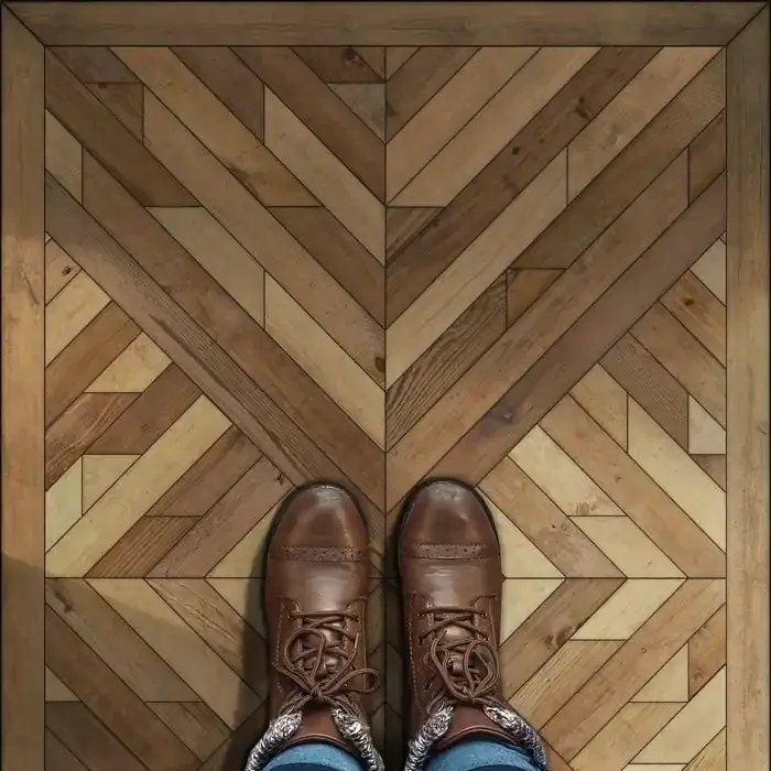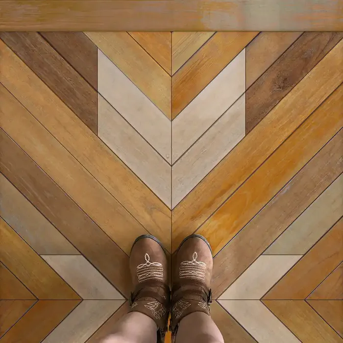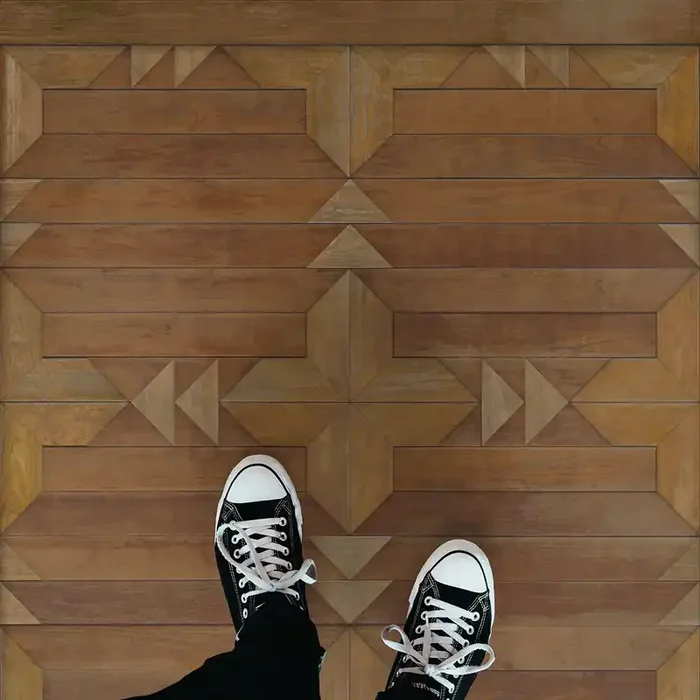 Vintage Vinyl Floorcloth Rug (Norwegian Wood – Nile – Reflections)