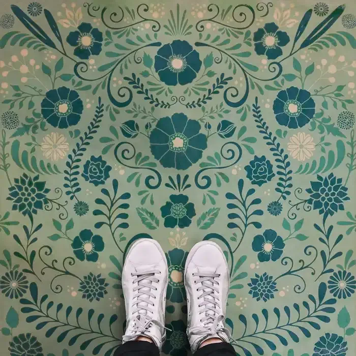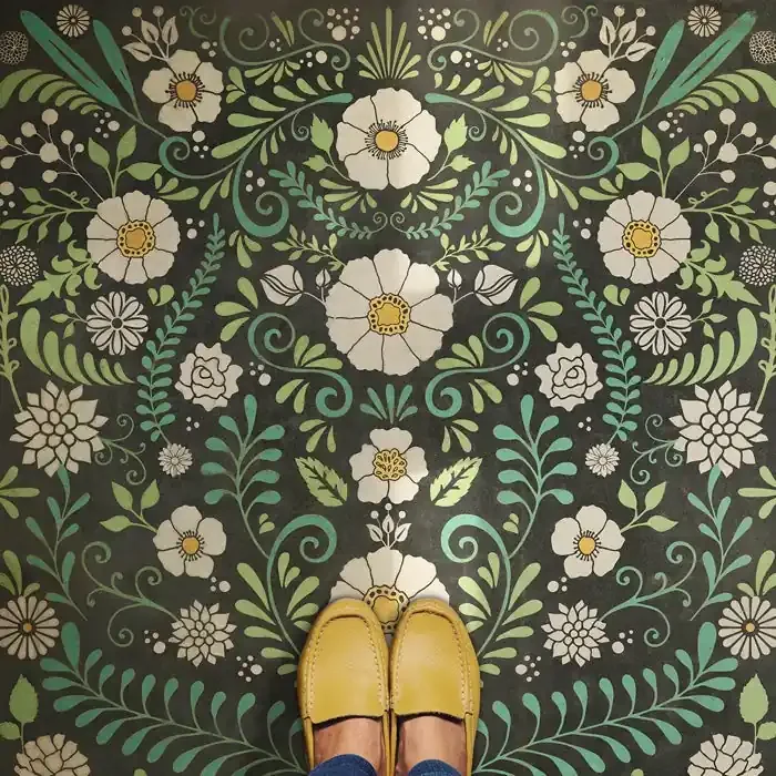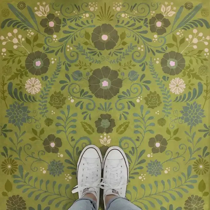 Vintage Vinyl Floorcloth Rug (Pattern 36 Going Green)