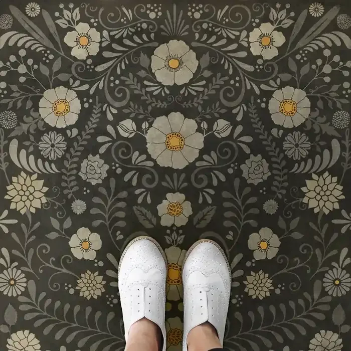 Vintage Vinyl Floorcloth Rug (Pattern 36 A Few Flowers At His Feet)