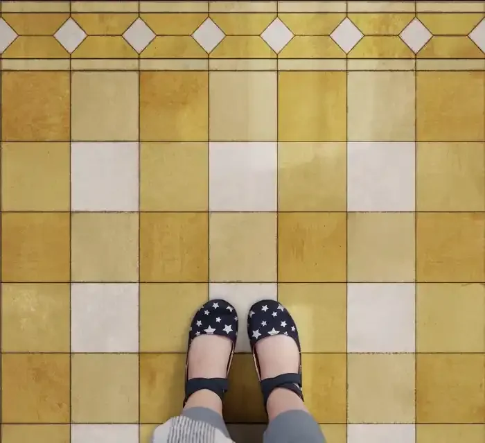 Vintage Vinyl Floorcloth Rug (Williamsburg Gingham Tile Yellow)