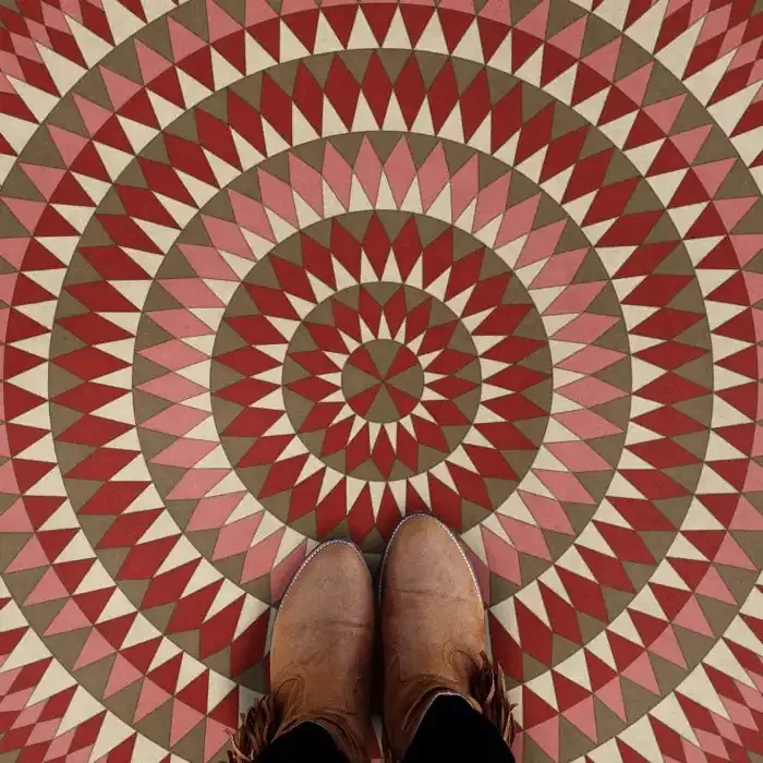 Vintage Vinyl Round Floorcloth Round Mats (American Folk Art Museum – Bulls Eye – Blaze Within Blaze)