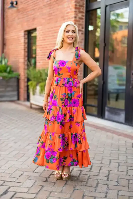 Edie Tie Shoulder Maxi Dress • Tuscan Rose