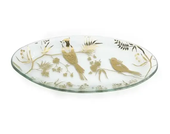 Birdsong Small Oval Platter- Gold- Annieglass