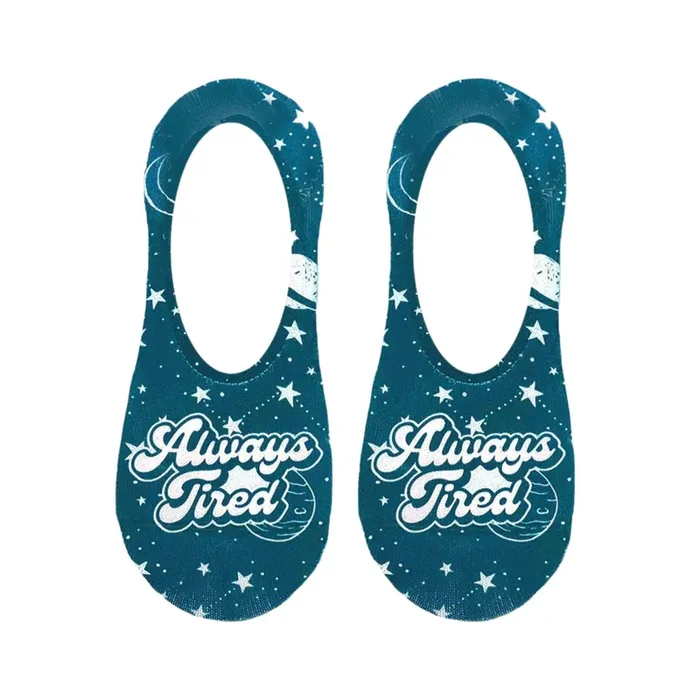 Always Tired No-Show Outer Space Liner Socks in Teal No-slip Grip Footies Invisible Half Socks