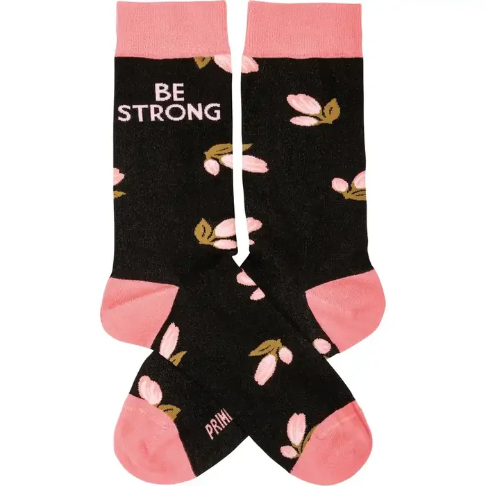 Be Strong Floral Socks in Black Background Motivational One Size Fits Most Novelty Socks