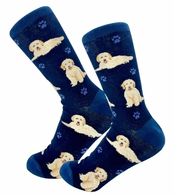 Goldendoodle, Navy Socks-Full Body
