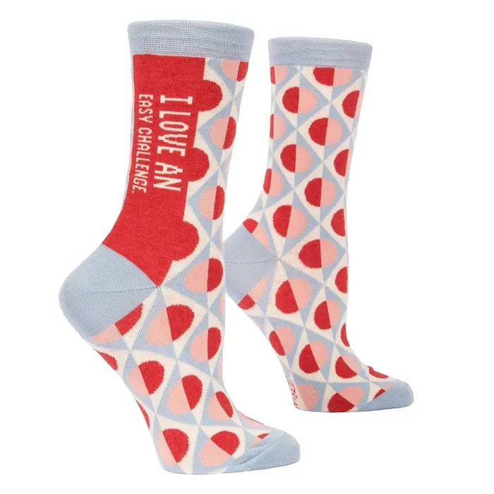 I Love An Easy Challenge Women‘s Crew Socks BlueQ at GetBullish