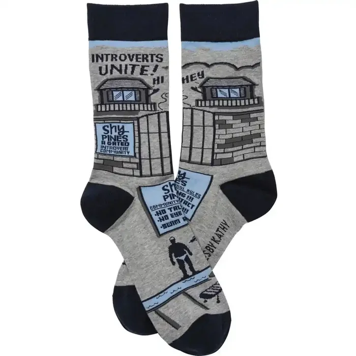 Introverts Unite Black Gray Funny Novelty Socks with Cool Design, Bold/Crazy/Unique Specialty Dress Socks