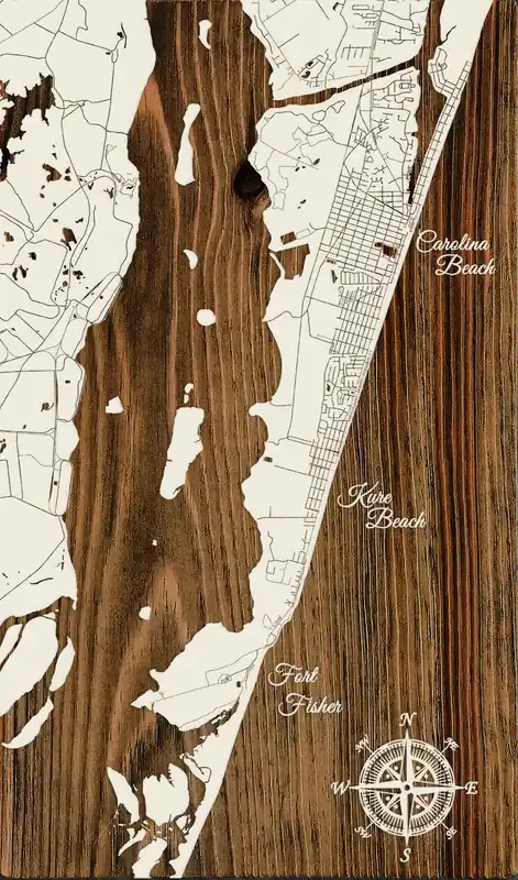 Carolina Beach to Fort Fisher Vertical Map in Papier Blanc